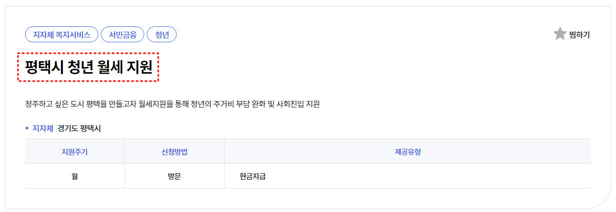 경기도 평택시를 기준으로 청년 월세 지원금의 예시를 알아보겠습니다.