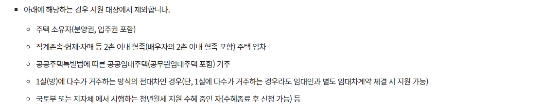 - 거주하는 곳은 임차보증금 9천만원 이하 또는 월세 50만원 이하에 세입 거주하여야 합니다.