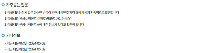 건축물대장 무료열람 민원은 근무시간 내에 신청을 한다면 3시간 이내에 즉시 처리되므로, 필요하신 분들은 정부24(구 민원24)에 접속하셔서 해당 업무를 진행하실 수 있습니다.