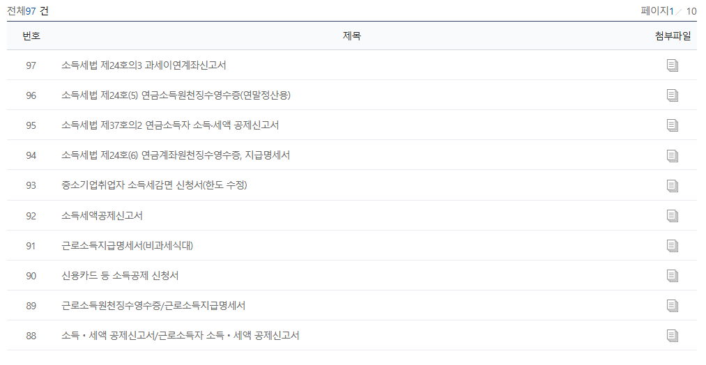 근로소득 원천징수영수증 양식 다운로드 방법